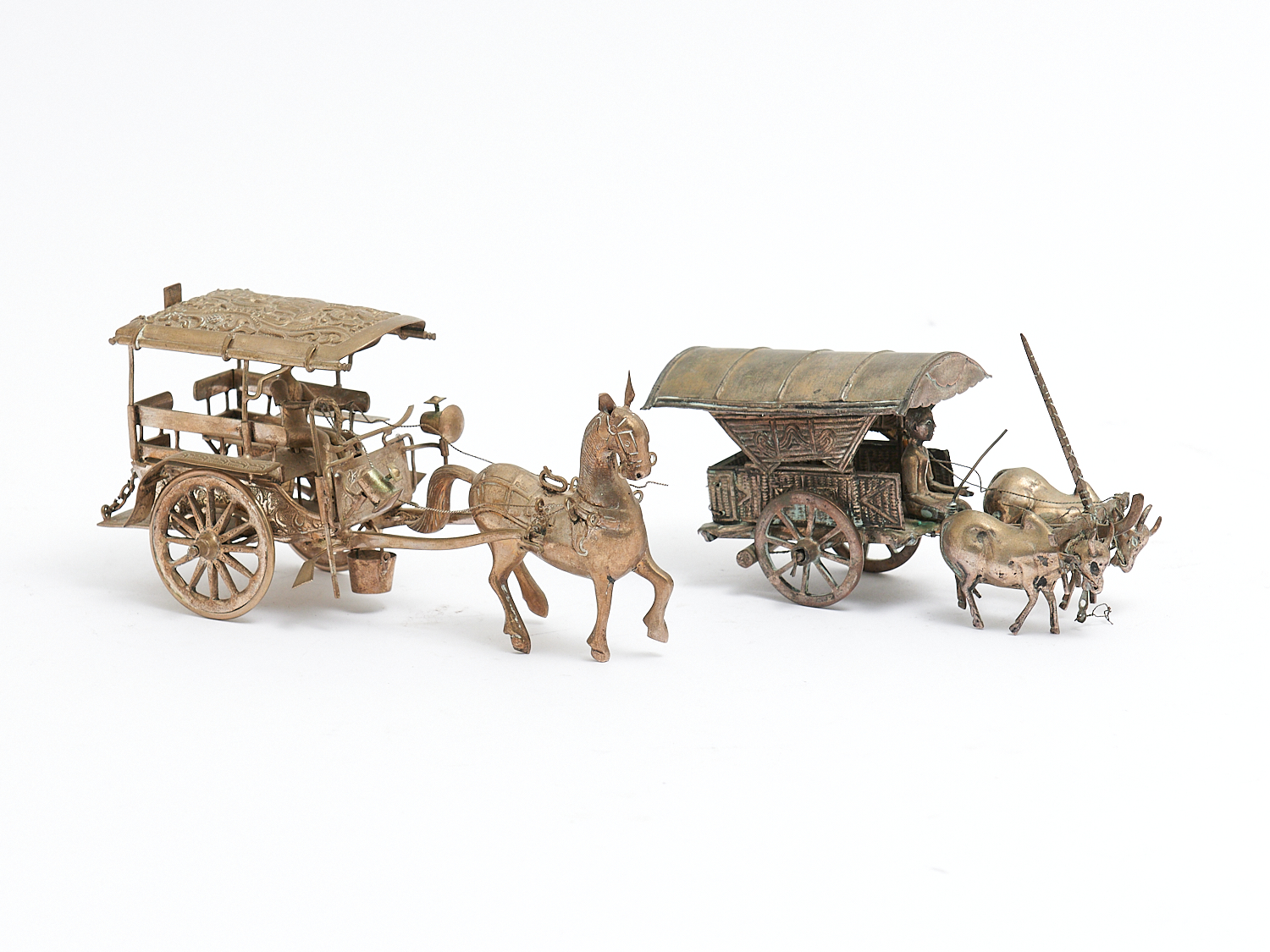 TWO SILVER HORSE DRAWN CARTS W.19.5CM (LARGEST), LEONARD JOEL LOCAL DELIVERY: SMALL