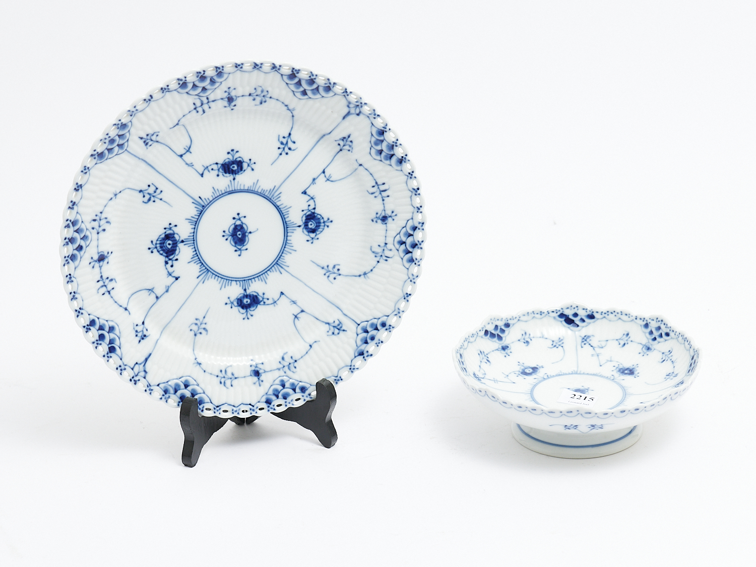 TWO VINTAGE DANISH ROYAL COPENHAGEN BLUE AND WHITE SERVING PLATE AND COMPORT DIA.24.5CM (LARGEST), LEONARD JOEL LOCAL DELIVERY: SMALL
