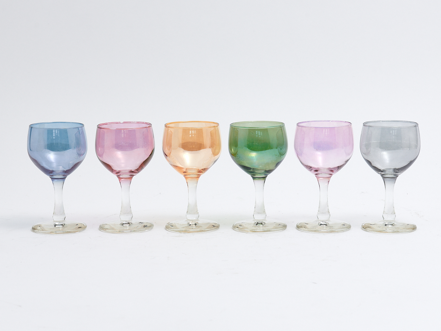 A SET OF SIX VINTAGE ITALIAN HARLEQUIN COLOUR CHAMPAGNE GLASSES H.12CM, LEONARD JOEL LOCAL DELIVERY: MEDIUM