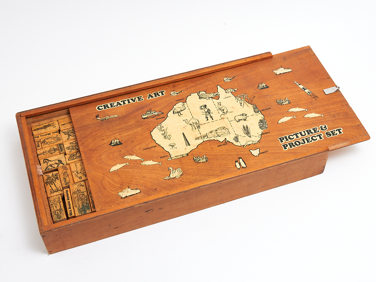A CASED SET OF WOODEN AND RUBBER STAMPS W.60CM, LEONARD JOEL LOCAL DELIVERY: MEDIUM