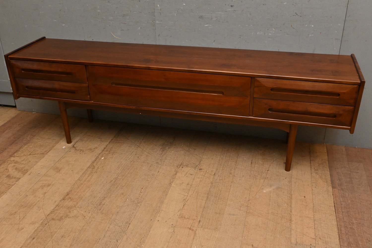 A SOLID TEAK SIDEBOARD (61H X 200W X 42D CM) (PLEASE NOTE THIS HEAVY ITEM MUST BE REMOVED BY CARRIERS AT THE CUSTOMER'S EXPENSE. LEONARD JOEL STAFF CANNOT ASSIST CARRYING THIS ITEM) (X-LARGE ITEM)
