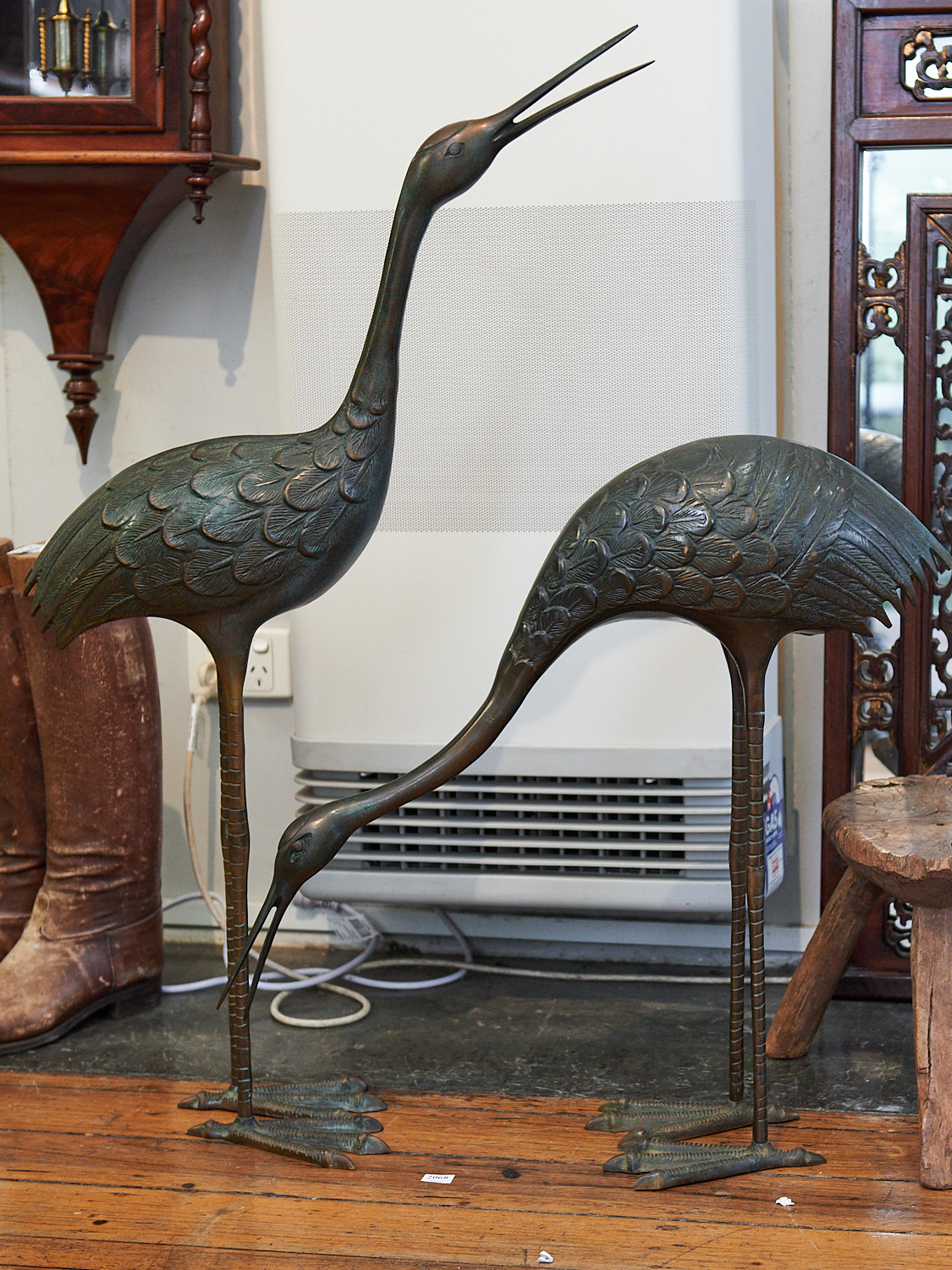 A PAIR OF BRONZED METAL STORKS H.96CM (TALLEST), LEONARD JOEL LOCAL DELIVERY: MEDIUM