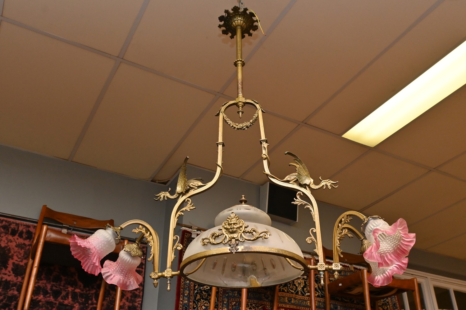 A FRENCH 19TH CENTURY BRONZE GASLIGHT CONVERTED TO ELECTRICITY (A/F) (108H X 110W X 34D CM) (PLEASE NOTE THIS HEAVY ITEM MUST BE REMOVED BY CARRIERS AT THE CUSTOMER'S EXPENSE. LEONARD JOEL STAFF CANNOT ASSIST CARRYING THIS ITEM) (X-LARGE ITEM)