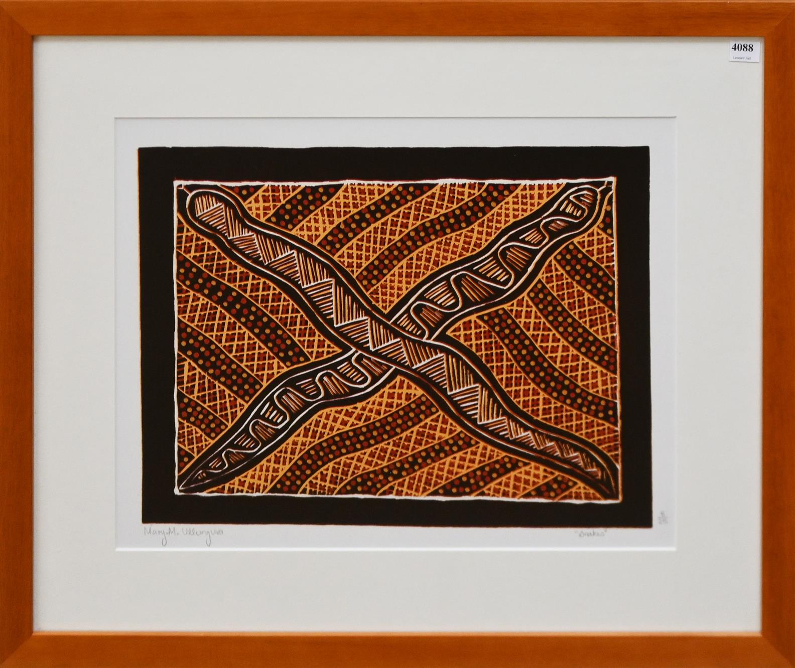 LIN ONUS, GUMIRING GARKMAN 1994, SCREENPRINT ED. 81/85, 49 X 75CM, FRAME SIZE: 82 X 104CM PROVENANCE: THE NATIONAL AUSTRALIA BANK...