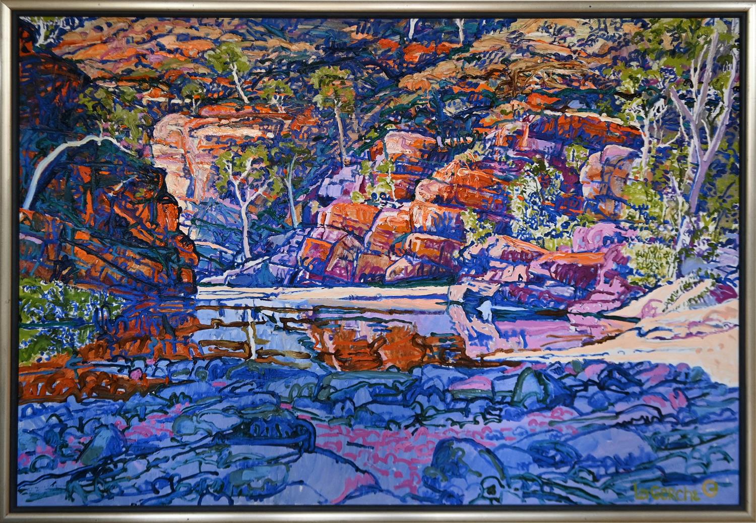 LIN ONUS, GUMBIRRI GARGANINGI 1991, SCREENPRINT ED. 27/85, 49.5 X 74CM, FRAME SIZE: 78 X 101CM PROVENANCE: THE NATIONAL AUSTRALIA...