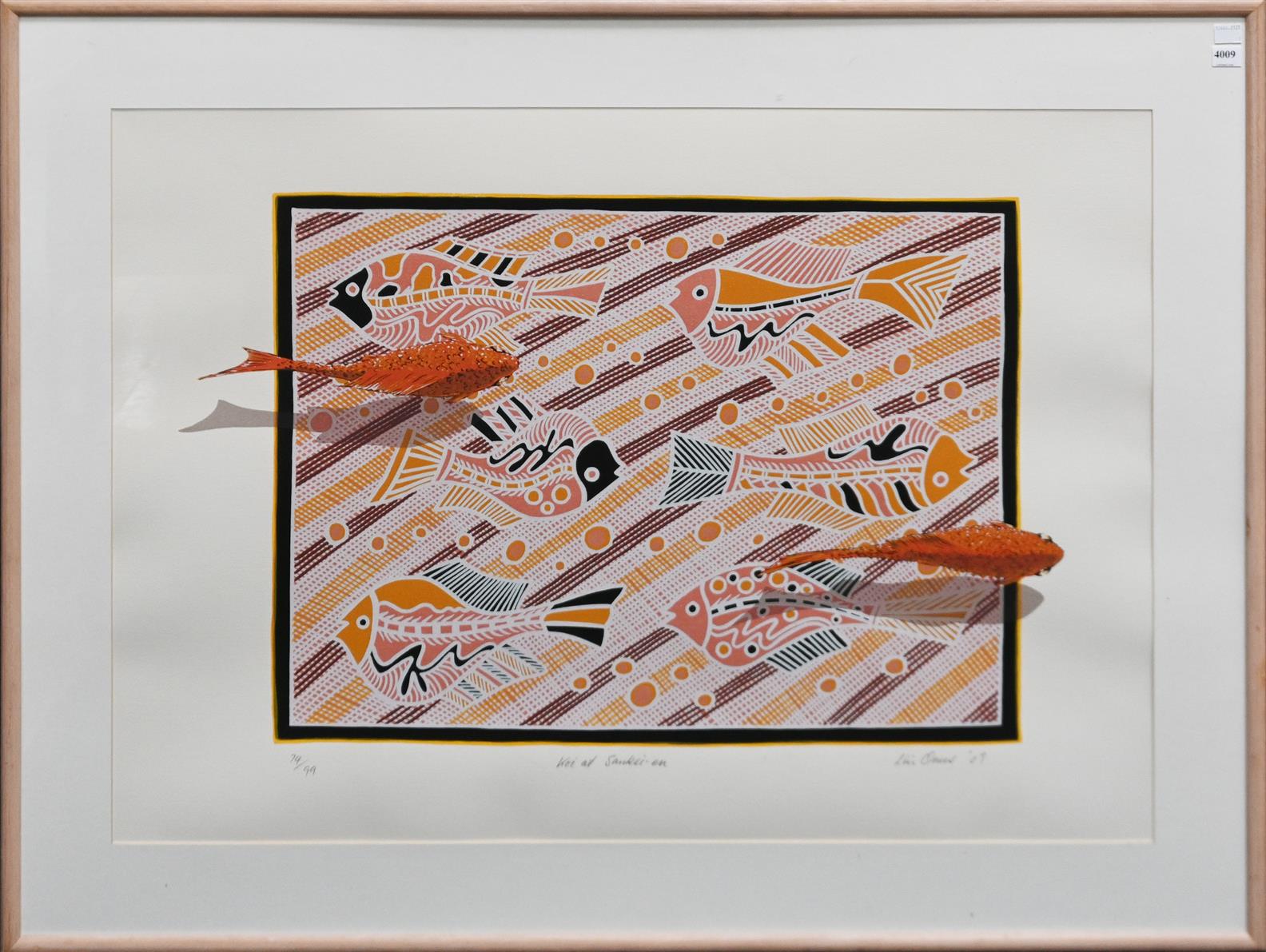 LIN ONUS, GUMBIRRI GARGININGI 1996, SCREENPRINT ED. 17/85, 50 X 75CM, FRAME SIZE: 80 X 103CM PROVENANCE: THE NATIONAL AUSTRALIA BA...