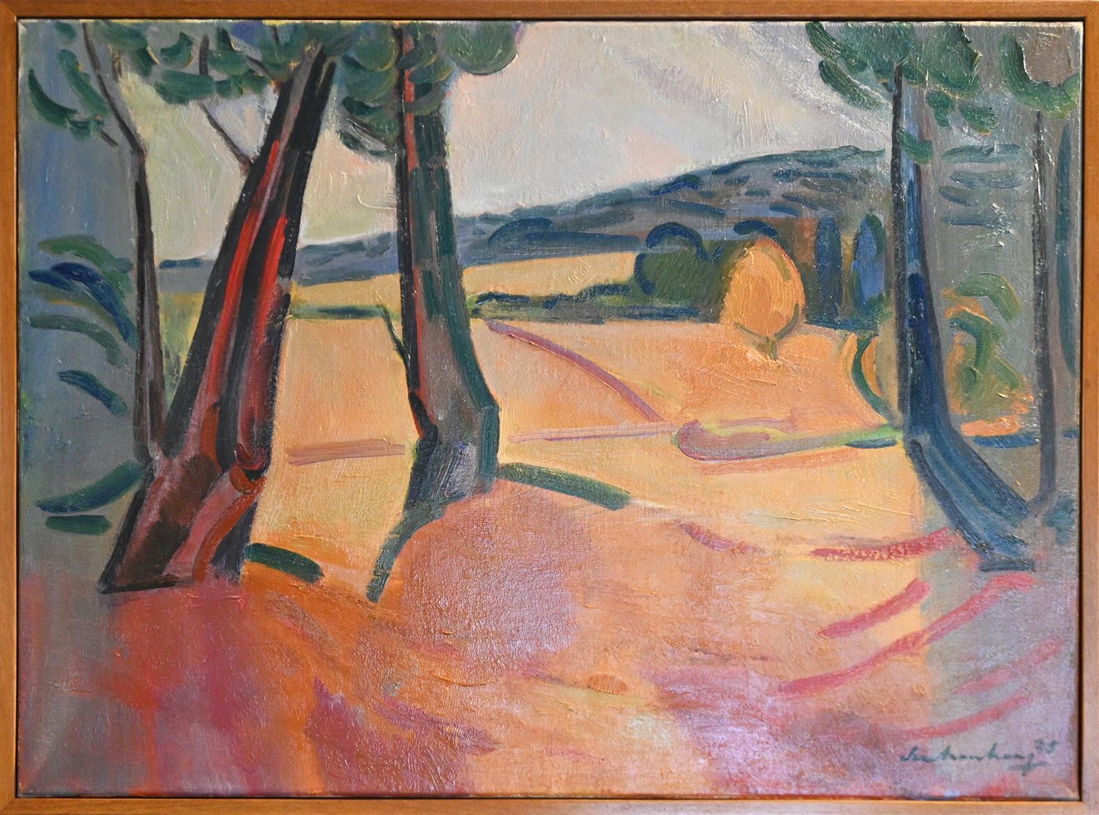 Good condition overall. Canvas slightly pulled in the lower left hand corner.