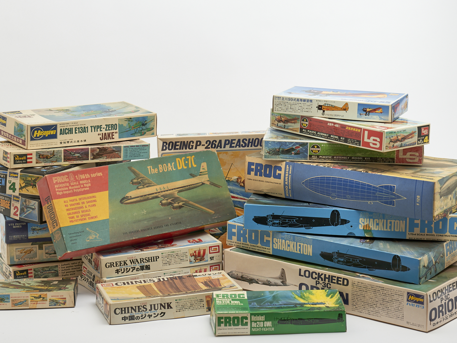A COLLECTION OF BOXED VINTAGE MODELS INCLUDING BATTLESHIPS, AEROPLANES, AND AIRSHIPS, LEONARD JOEL LOCAL DELIVERY: LARGE