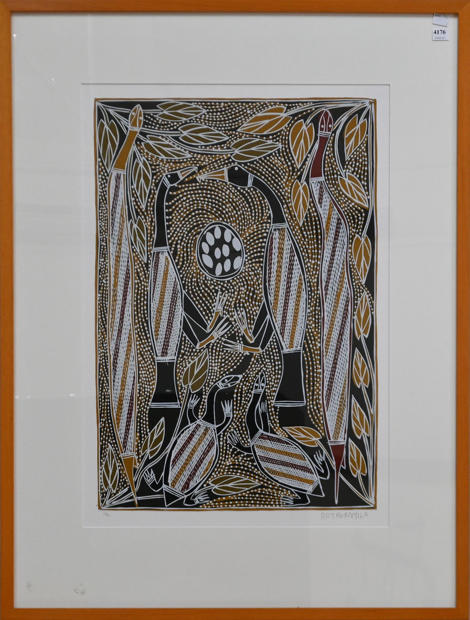 LIN ONUS, GUMBIRRI GARGININGI 1996, SCREENPRINT ED. 17/85, 50 X 75CM, FRAME SIZE: 80 X 103CM PROVENANCE: THE NATIONAL AUSTRALIA BA...