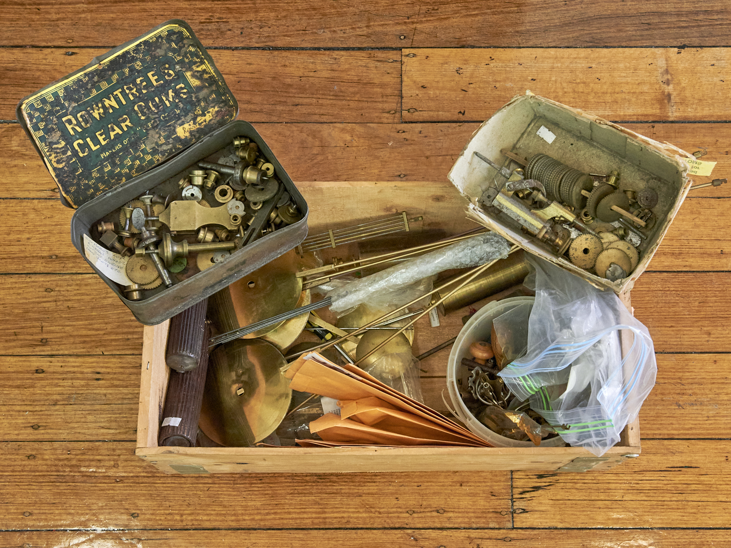 A COLLECTION OF ANTIQUE CLOCK KEYS, WINDERS, PENDULUMS, TOOLS AND ACCESSORIES, LEONARD JOEL LOCAL DELIVERY: LARGE