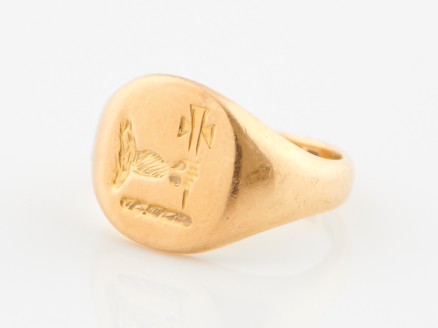 A SIGNET RING IN 18CT GOLD, SIZE I, 6.2GMS