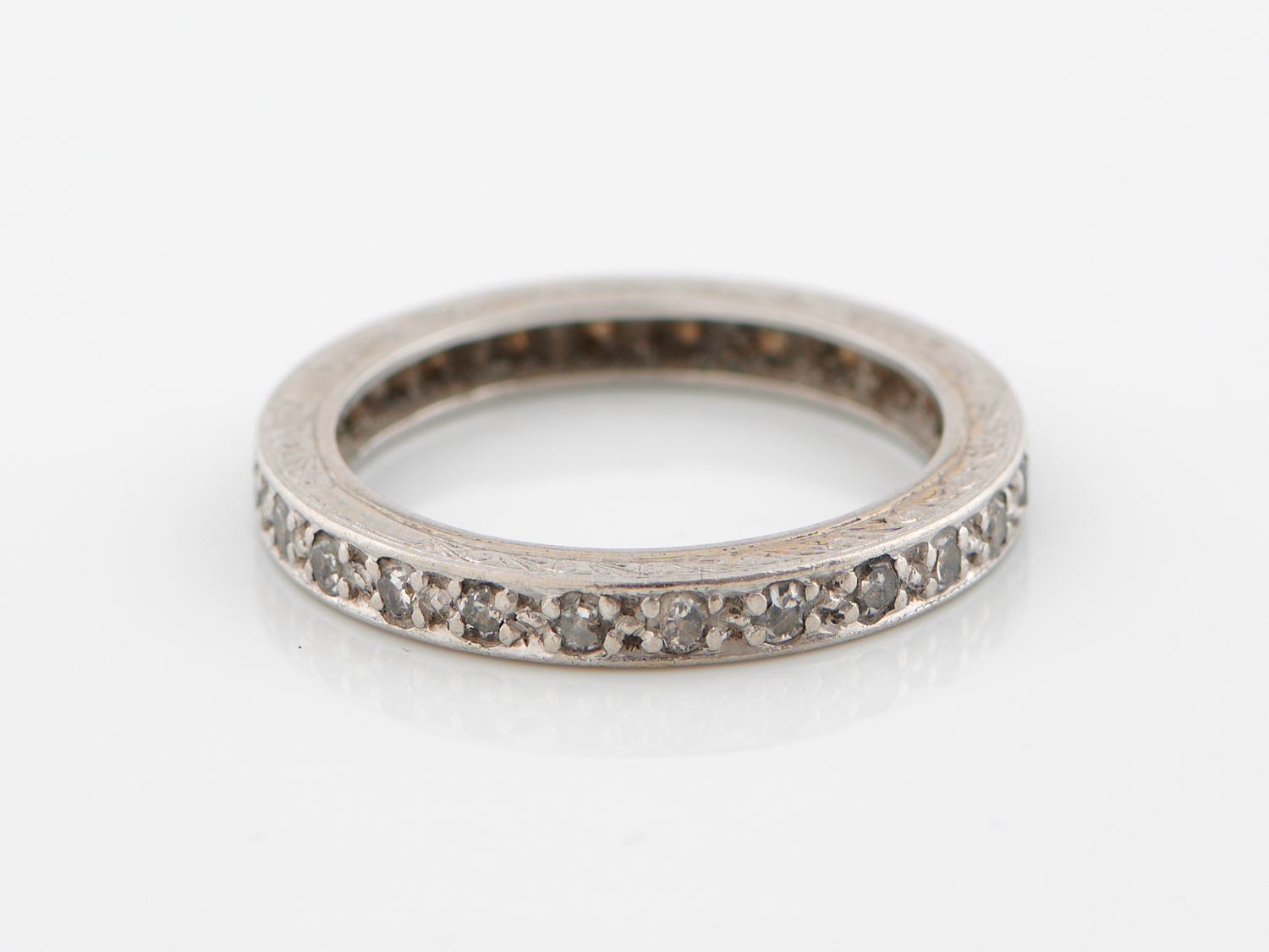 A DIAMOND ETERNITY RING IN PLATINUM, SIZE K, 3.5GMS
