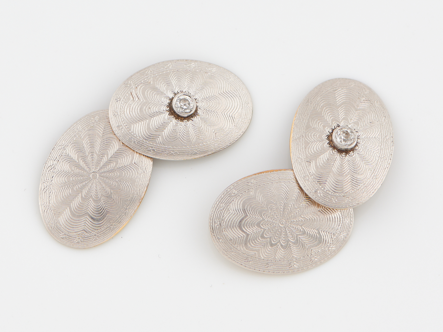 A PAIR OF DIAMOND CUFFLINKS IN PLATINUM AND 14CT GOLD, 6.1GMS