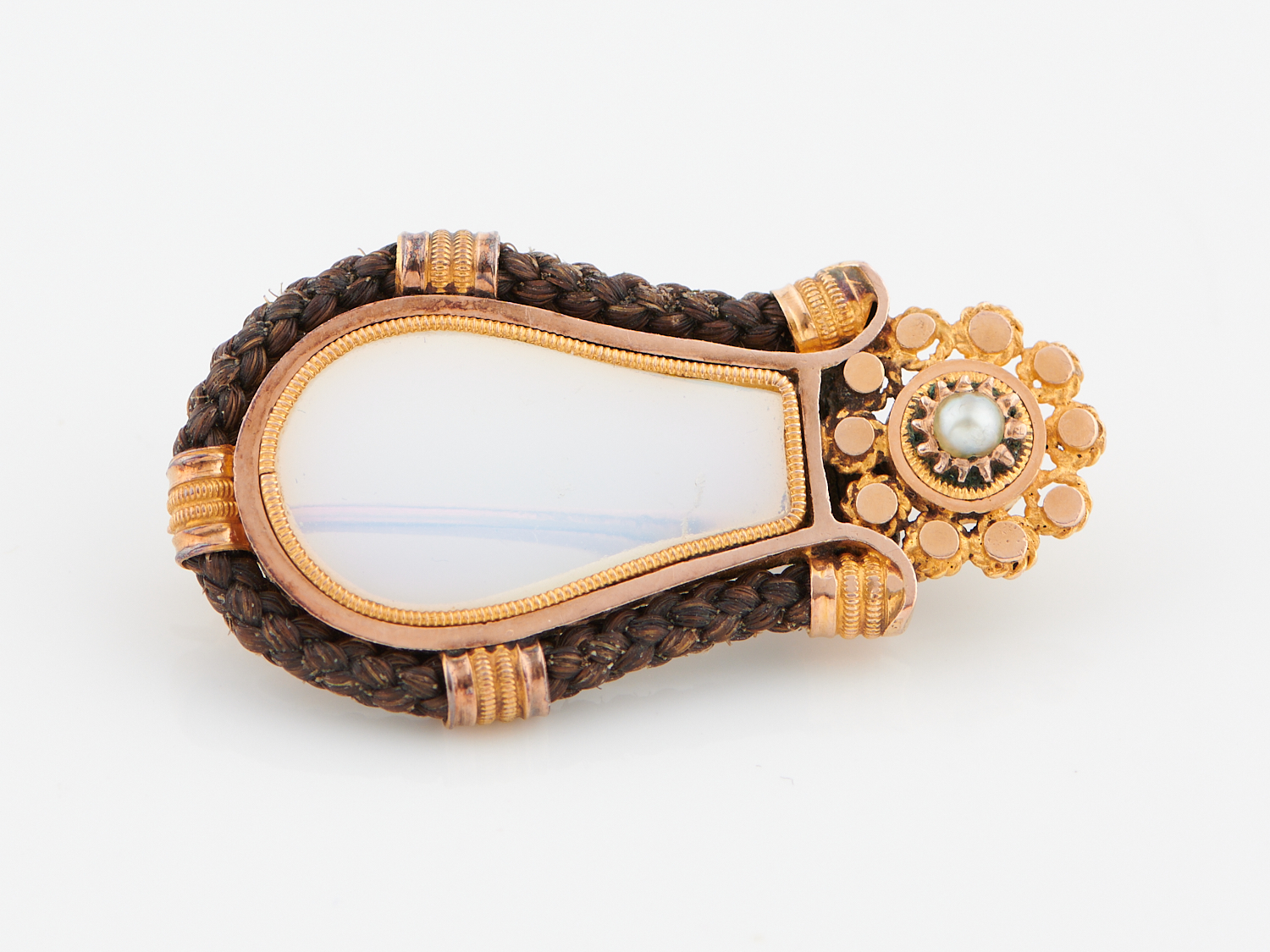 A GEORGIAN MOURNING BROOCH IN 15CT GOLD, MEASURING 30 X 20MM