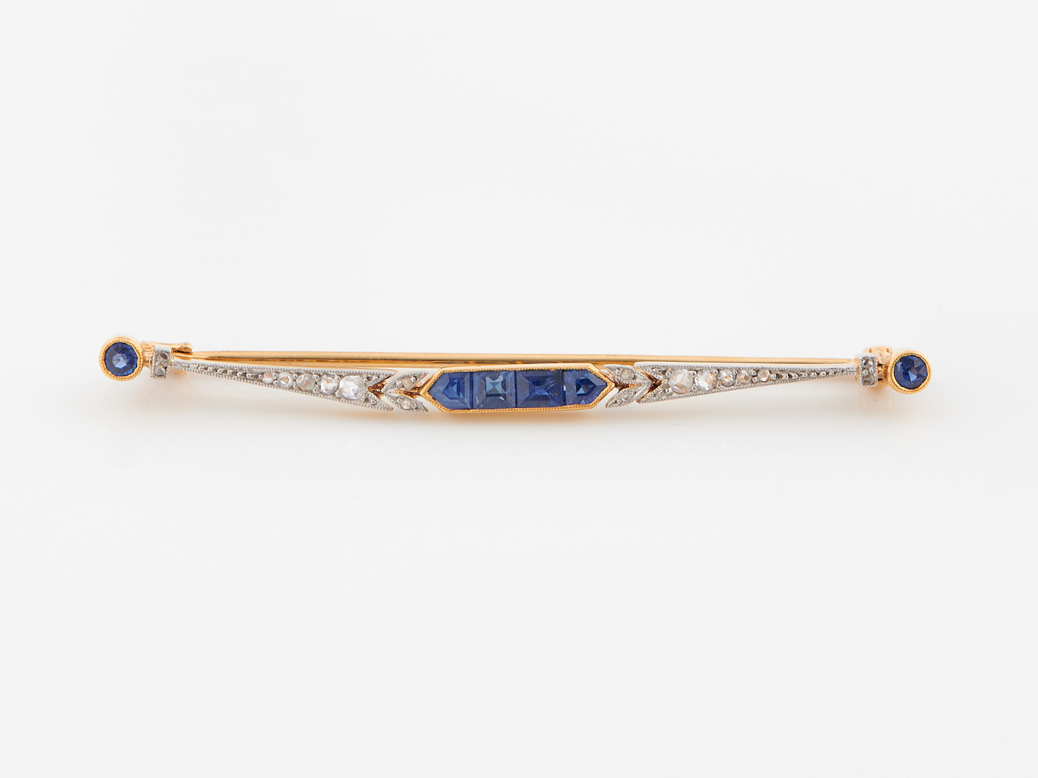 AN EDWARDIAN SAPPHIRE AND DIAMOND BROOCH, LENGTH 60MM, 3.8GMS