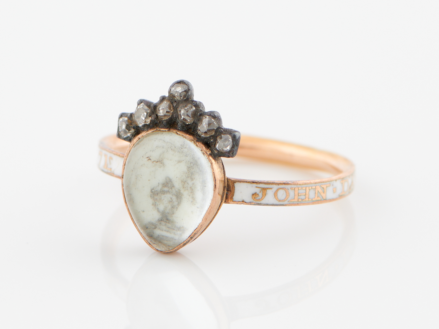 A GEORGIAN ENAMEL MOURNING RING READING JOHN DAWSON 20 NOV. 1771, SIZE J