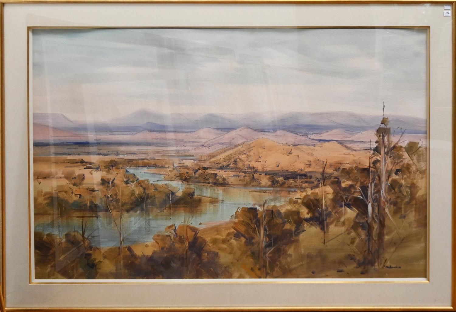BARNEY ELLAGA, ALAWA COUNTRY 1995, ACRYLIC ON CANVAS, STAMPED VERSO ALCASTON HOUSE GALLERY, 94 X 192CM PROVENANCE: THE NATIONAL AU...