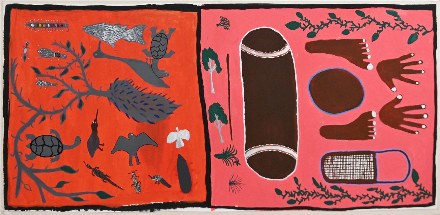 LIN ONUS, GUMBIRRI GARGANINGI 1991, SCREENPRINT ED. 27/85, 49.5 X 74CM, FRAME SIZE: 78 X 101CM PROVENANCE: THE NATIONAL AUSTRALIA...