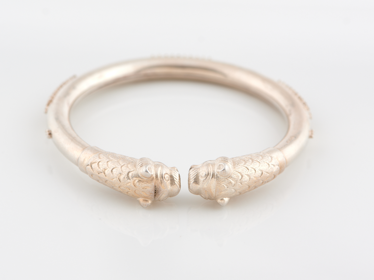 A VINTAGE ETRUSCAN REVIVAL STYLE BANGLE IN SILVER, INNER DIAMETER 70MM