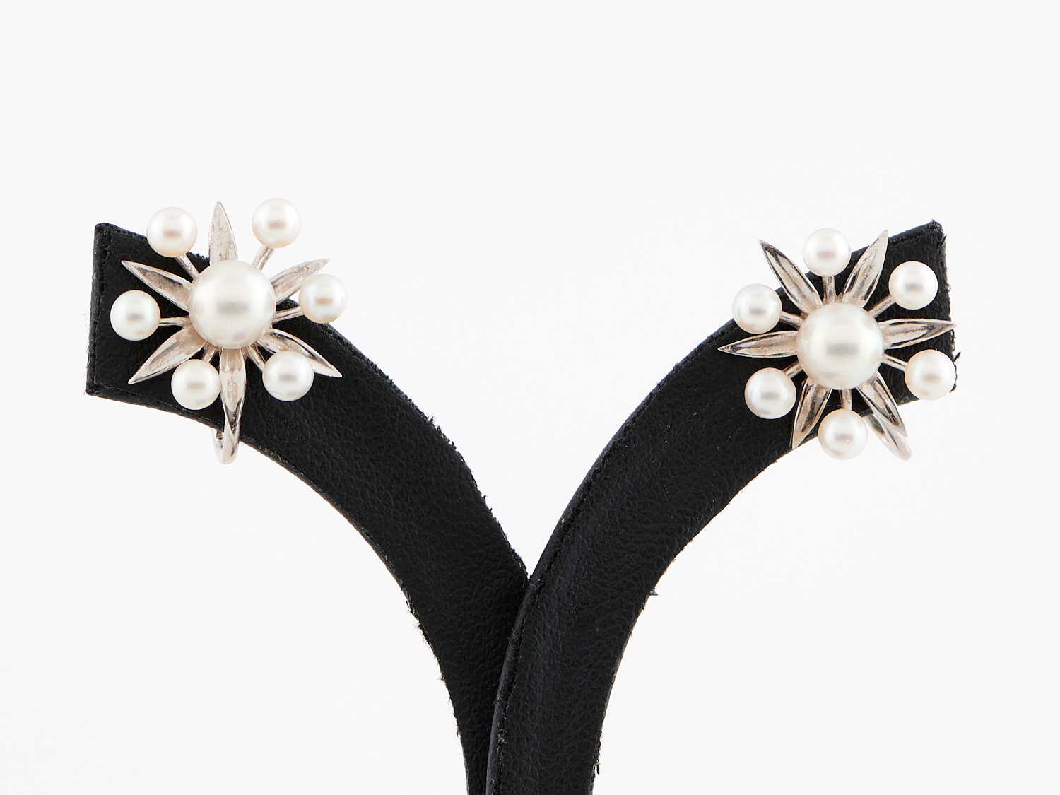 A PAIR CULTURED PEARL EARRINGS IN 14CT WHITE GOLD, TO SCREW BACK FITTINGS, MEASUING 15 X 15MM, 4.6GMS