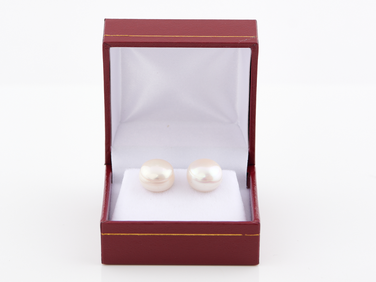 A PAIR OF 11MM CULTURED PEARL BUTTON EARRINGS IN SILVER, BOXED