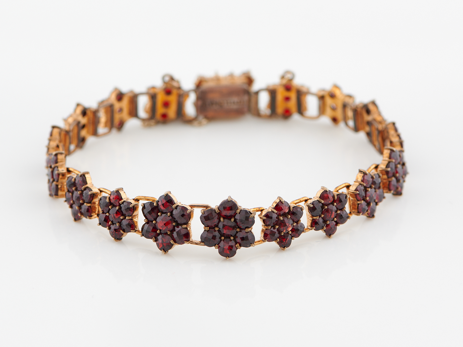 A VINTAGE GARNET BRACELET IN GILT, LENGTH 155MM