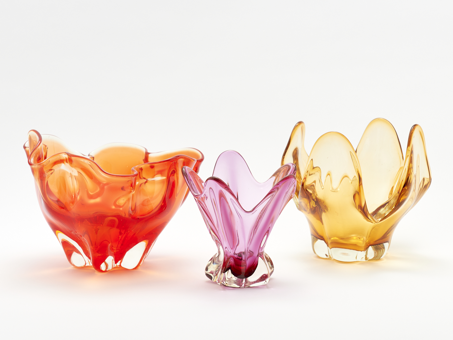 A GROUP OF THREE ART GLASS BOWLS H.16CM (TALLEST), LEONARD JOEL LOCAL DELIVERY: MEDIUM