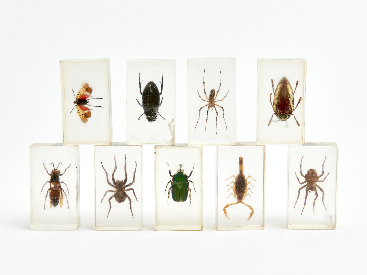 A GROUP OF NINE ACRYLIC CASED INSECT SPECIMENS W.7.5CM, LEONARD JOEL LOCAL DELIVERY: SMALL