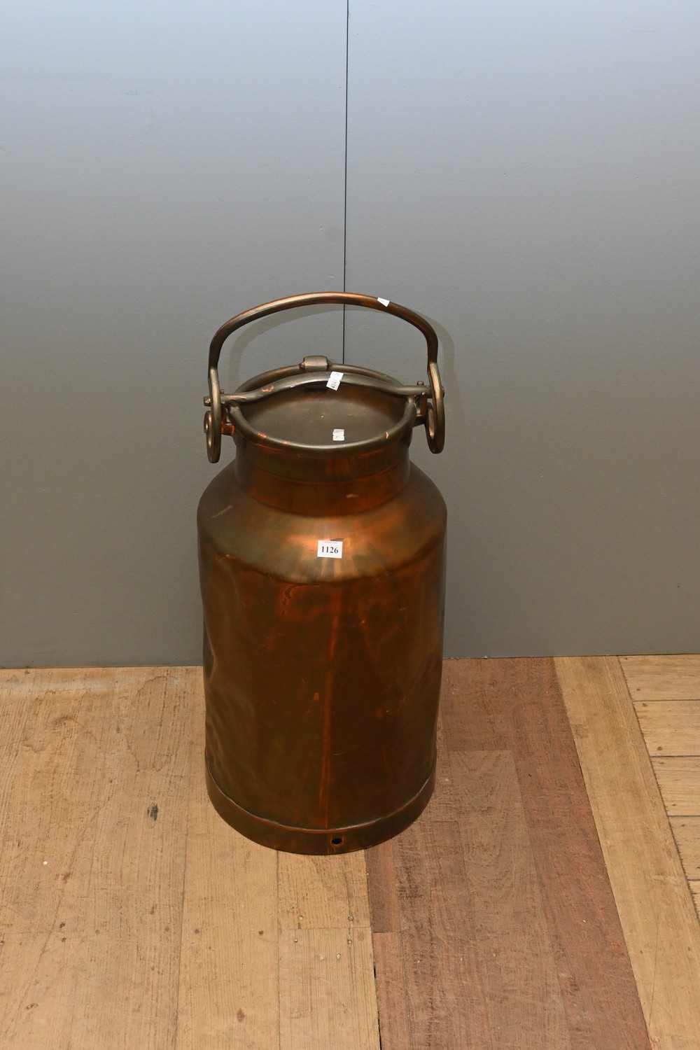 A FRENCH SOLID COPPER LOCKING SWING HANDLED MILK URN (67H X 29D CM) (LEONARD JOEL DELIVERY SIZE: LARGE)