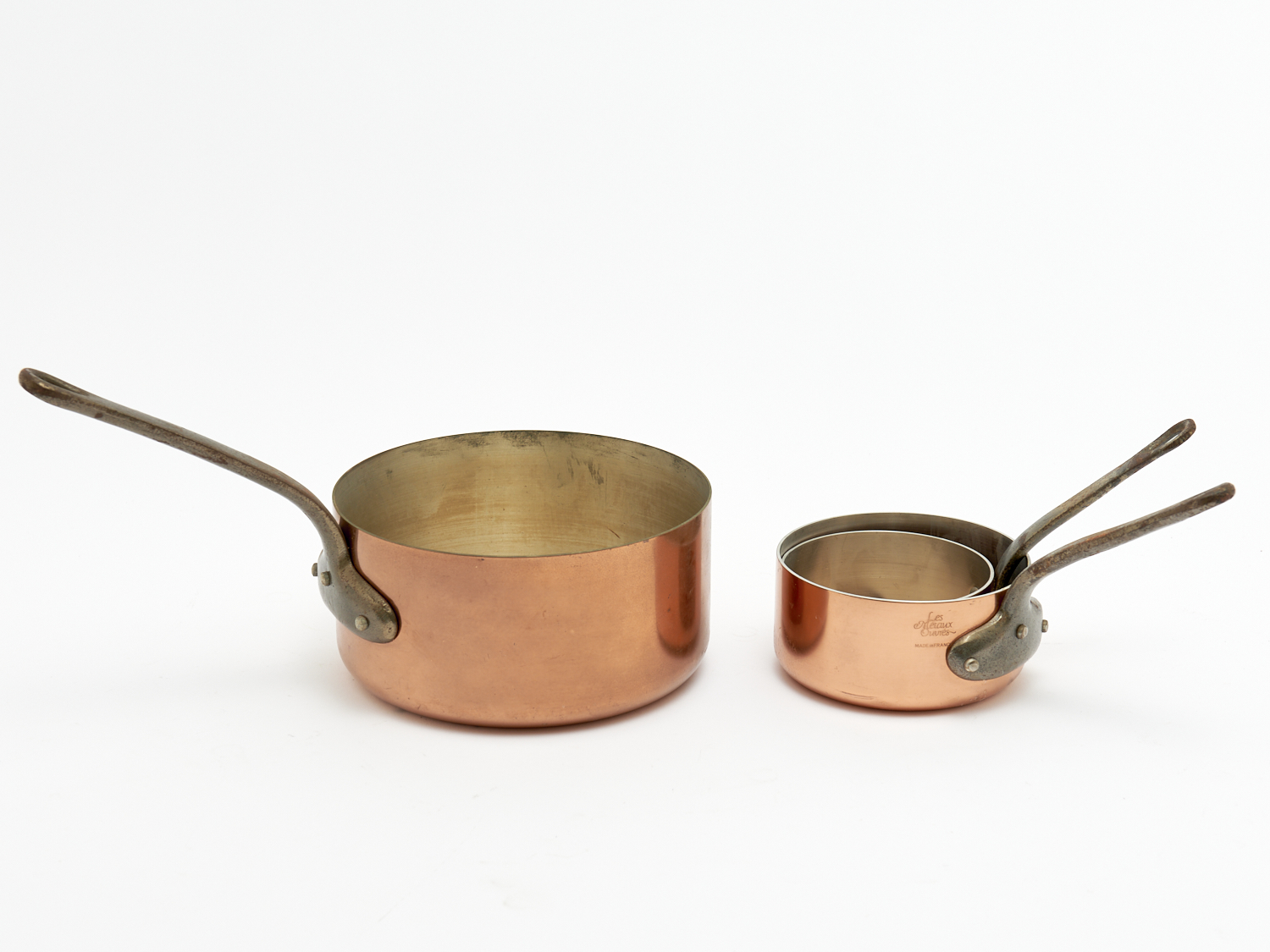 THREE COPPER SAUCEPANS MARKED FRANCE DIA.18CM (LARGEST), LEONARD JOEL LOCAL DELIVERY: MEDIUM