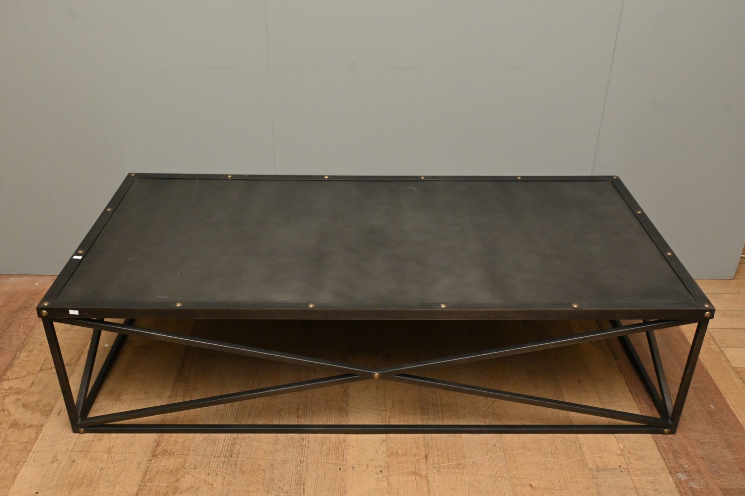 A METAL COFFEE TABLE (43H X 170W X 81D CM) (PLEASE NOTE THIS HEAVY ITEM MUST BE REMOVED BY CARRIERS AT THE CUSTOMER'S EXPENSE. LEONARD JOEL STAFF CANNOT ASSIST CARRYING THIS ITEM) (X-LARGE ITEM)