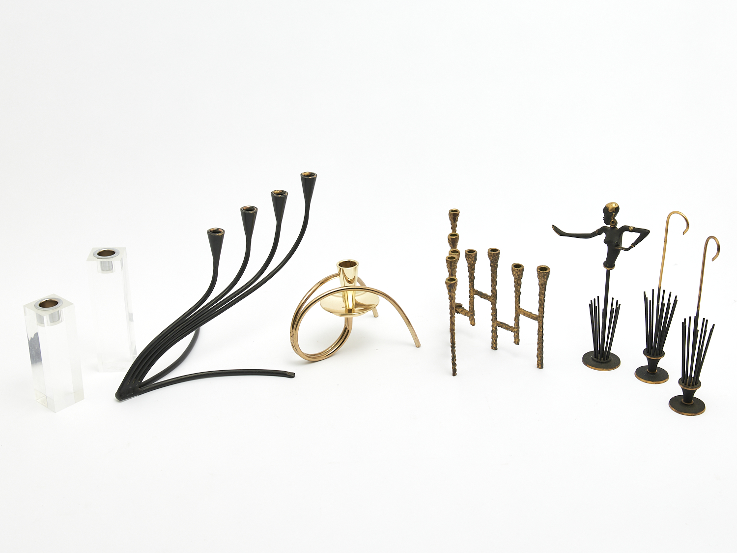 A GROUP OF CANDLE HOLDERS AND PARIS ART NAPKIN HOLDERS H.22CM (TALLEST), LEONARD JOEL LOCAL DELIVERY: SMALL