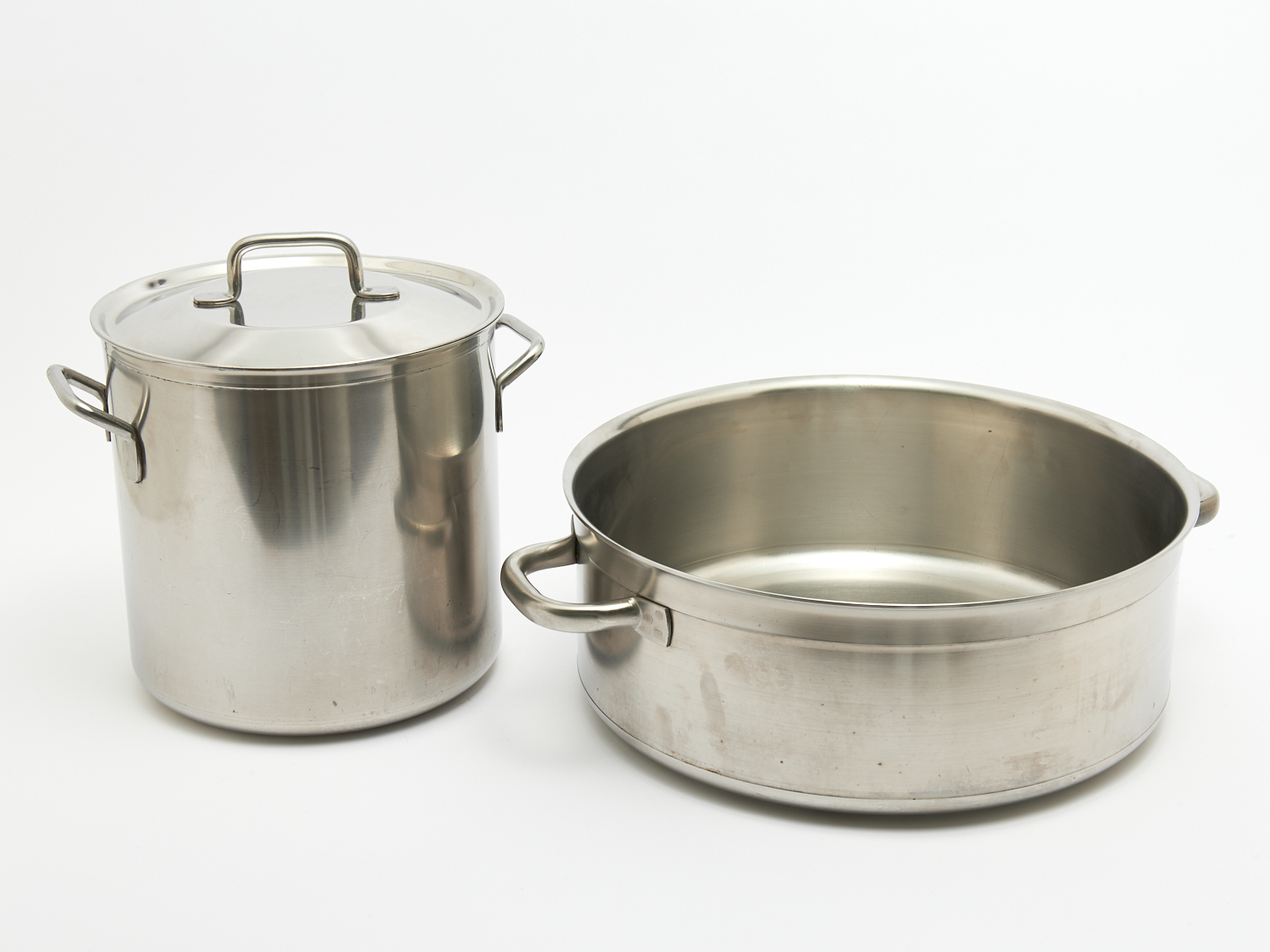 TWO LARGE FRENCH POTS (ONE WITH LID) D.42CM (LARGEST), LEONARD JOEL LOCAL DELIVERY: MEDIUM