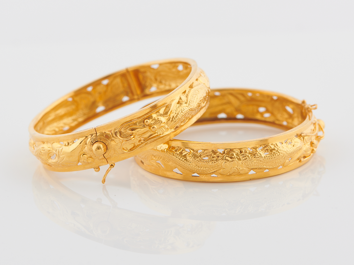 TWO HINGED BANGLES IN 18CT GOLD, INSIDE DIAMETER 160MM, 33.7GMS