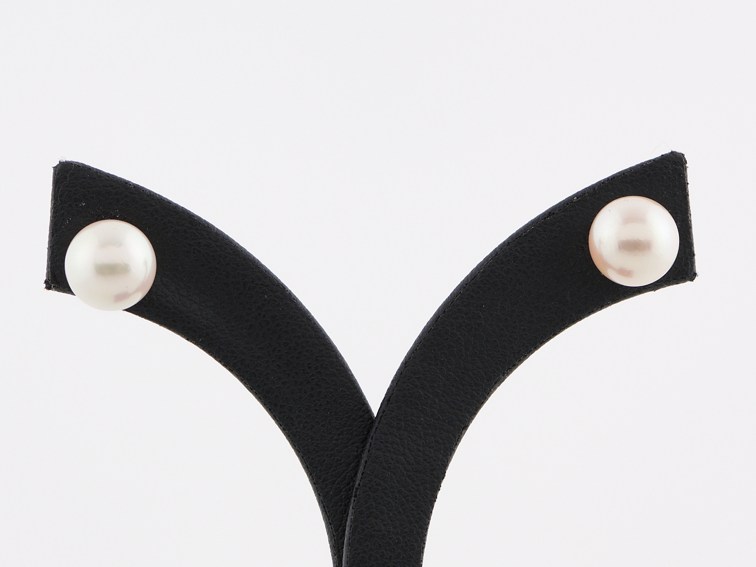 A PAIR OF 8.27MM PEARL STUD EARRINGS IN 14CT GOLD, TO POST FITTINGS