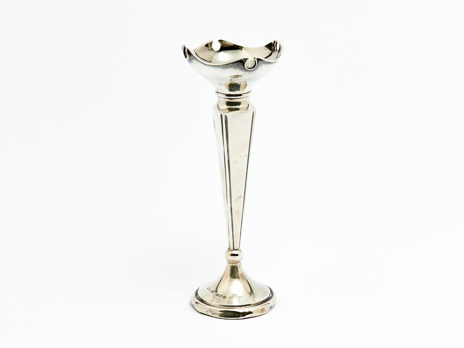 A STERLING SILVER BUD VASE WITH WEIGHTED BASE H.18CM, LEONARD JOEL LOCAL DELIVERY: SMALL