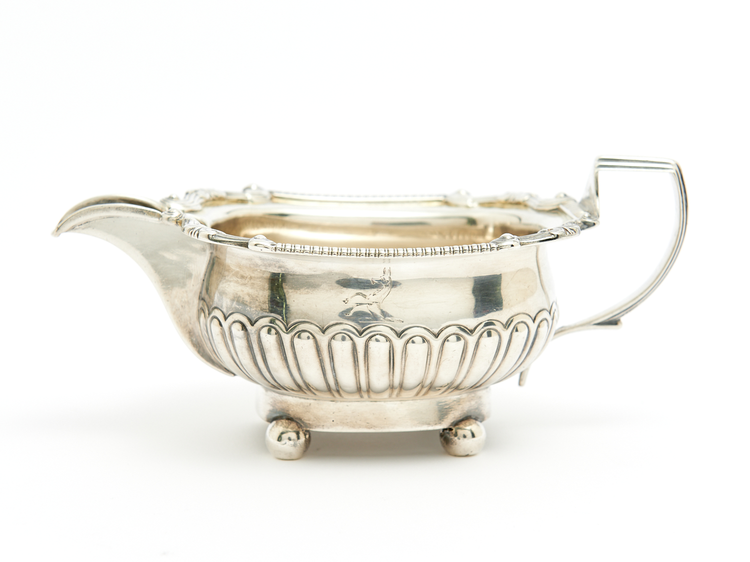A STERLING SILVER GRAVY BOAT, 220G W.17CM, LEONARD JOEL LOCAL DELIVERY: SMALL