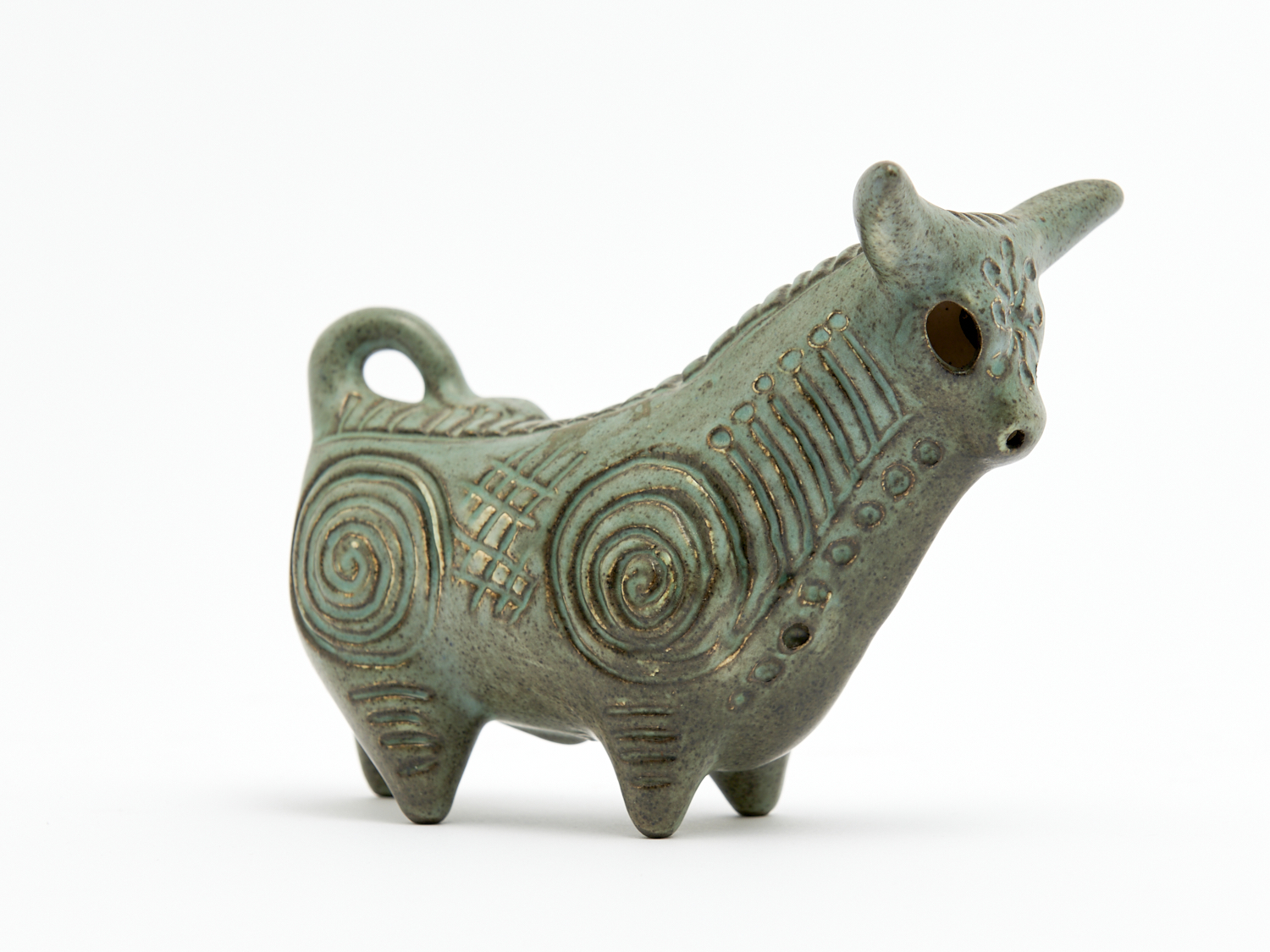 A POTTERY BULL BY GUS MCLAREN H.10.5 X 13.5CM, LEONARD JOEL LOCAL DELIVERY: SMALL