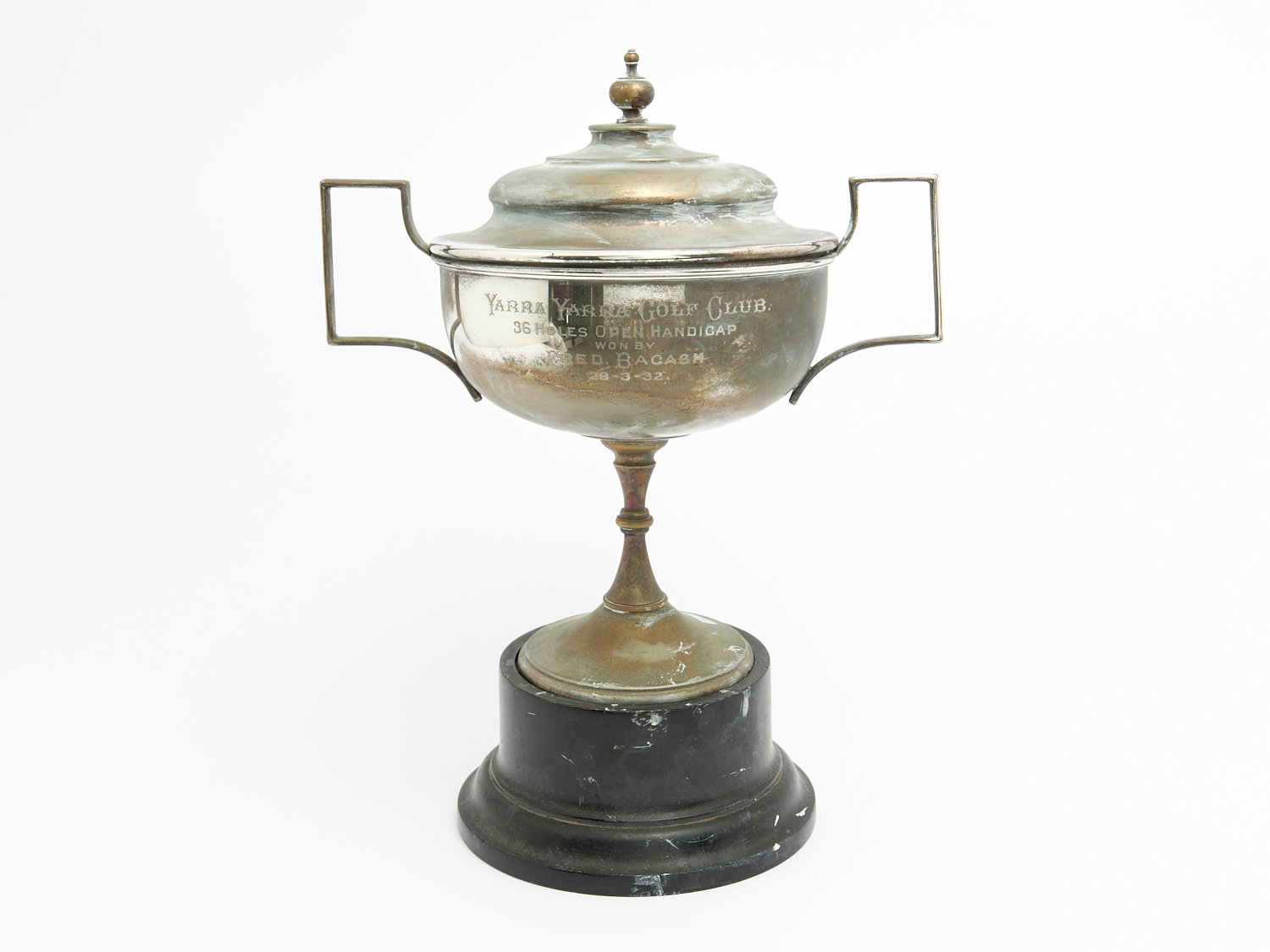 A 1932 YARRA YARRA GOLF CLUB SILVERPLATED TROPHY H.43CM (A/F), LEONARD JOEL LOCAL DELIVERY: MEDIUM