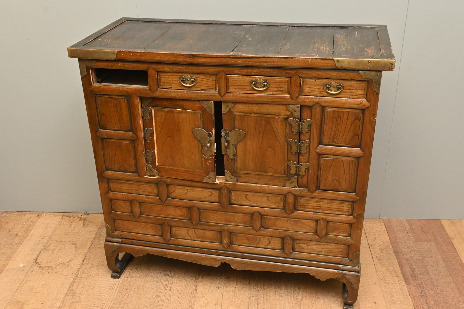 A CHINESE CHEST (A/F) (100H X 106W X 47D CM) (LEONARD JOEL DELIVERY SIZE: LARGE)