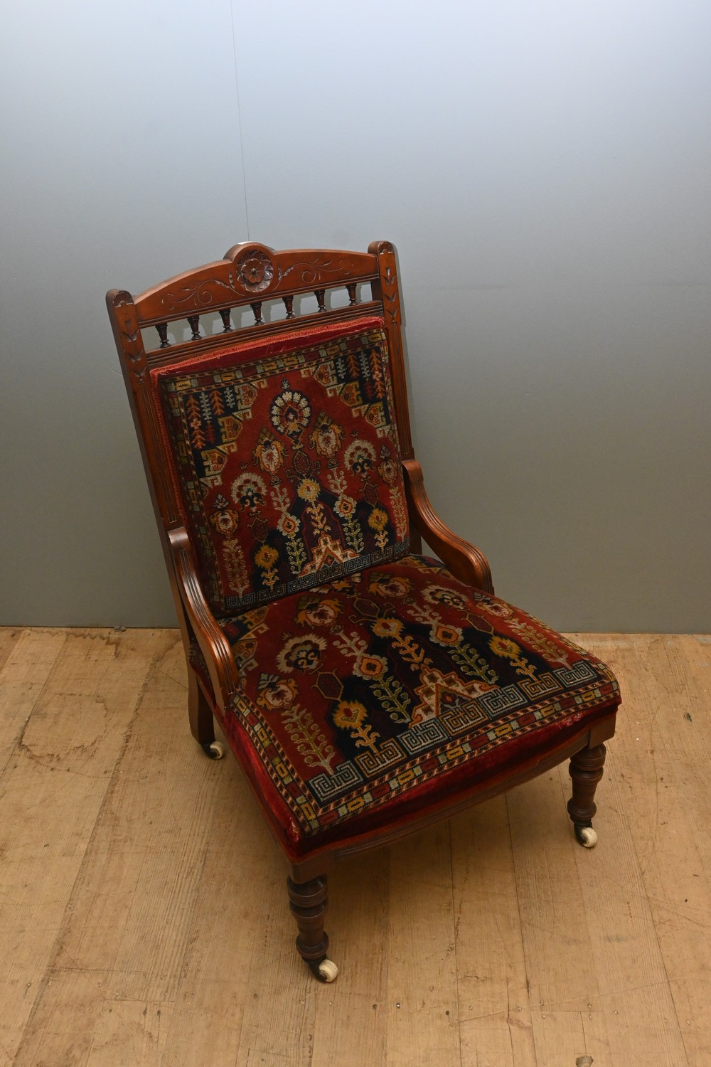 A LATE VICTORIAN WALNUT SALON CHAIR (A/F) (94H X 54W X 58D CM) (LEONARD JOEL DELIVERY SIZE: LARGE)
