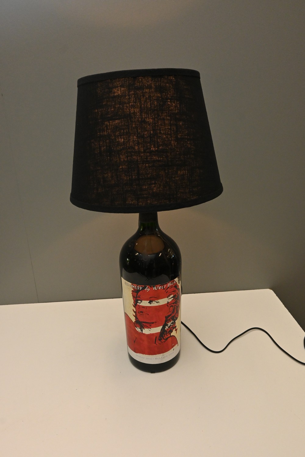 A WINE BOTTLE FORM CONVERTED TABLE LAMP (75H X 35DIA CM) (LEONARD JOEL DELIVERY SIZE: MEDIUM)