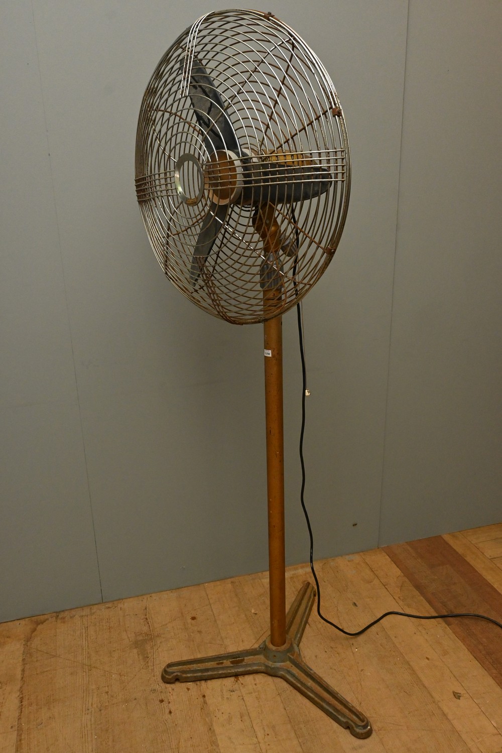 A VINTAGE INDUSTRIAL FAN (176H CM) (PLEASE NOTE THIS HEAVY ITEM MUST BE REMOVED BY CARRIERS AT THE CUSTOMER'S EXPENSE. LEONARD JOEL STAFF CANNOT ASSIST CARRYING THIS ITEM) (X-LARGE ITEM)