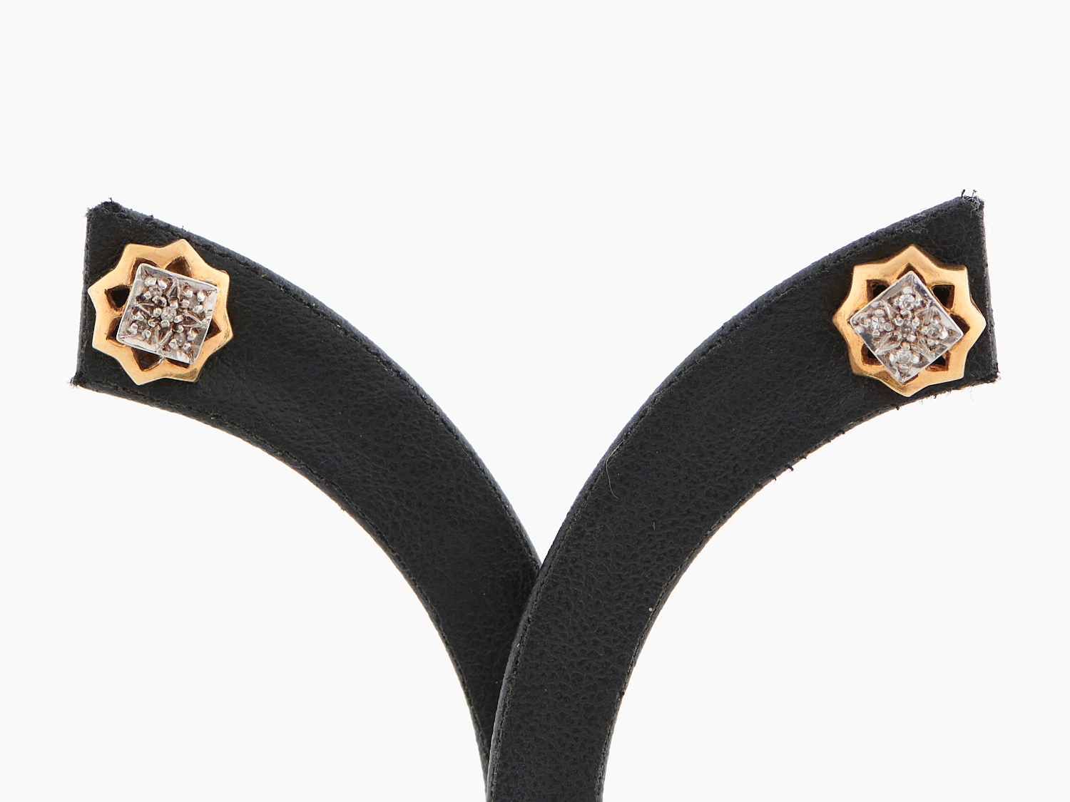 A PAIR OF DIAMOND STAR FORM EARRINGS IN 9CT GOLD, TO POST AND BUTTERFLY FITTINGS, 2.5GMS