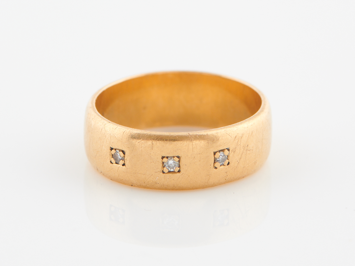 A DIAMOND BAND IN 18CT GOLD, RING SIZE I, 4.7GMS
