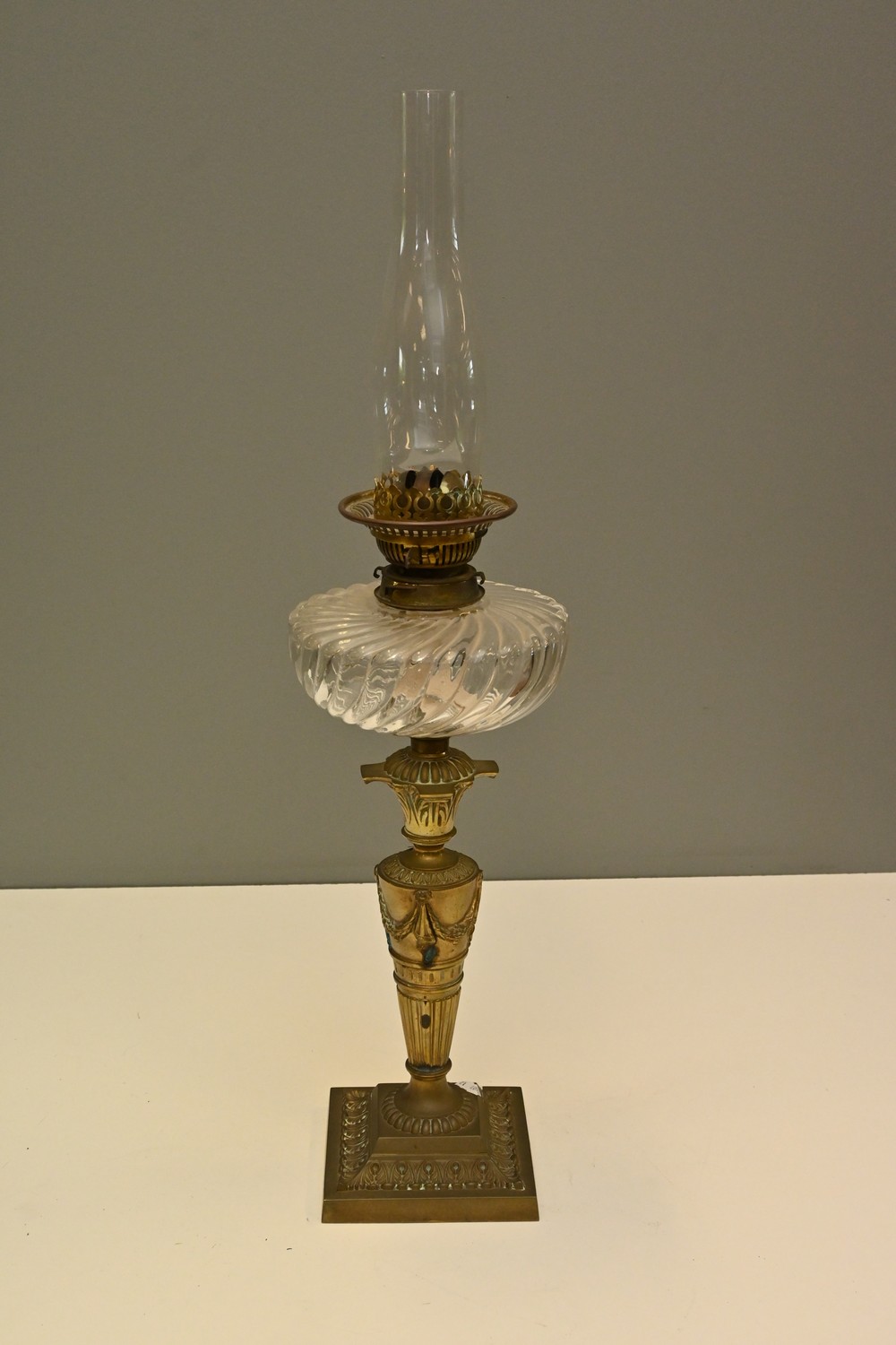 A TWIN BURNER KEROSENE LAMP (A/F) (72H CM) (LEONARD JOEL DELIVERY SIZE: MEDIUM)