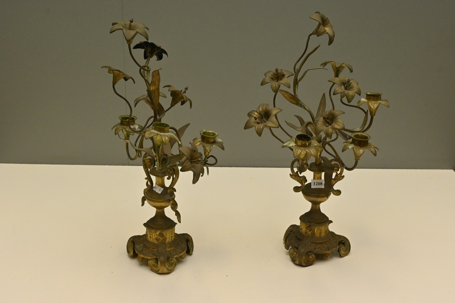 A PAIR OF FRENCH FLORAL CANDELABRA (A/F) (49H X 35W X 20D CM) (86H X 56W CM) (LEONARD JOEL DELIVERY SIZE: MEDIUM)
