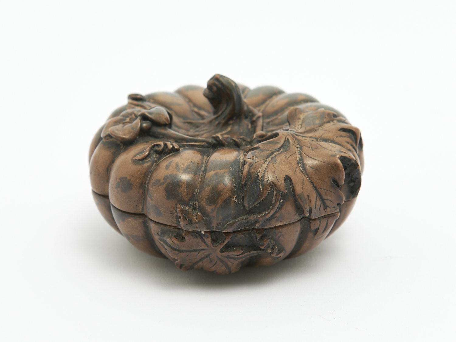 A JAPANESE CARVED PUMPKIN BOX DIA.9.5CM, LEONARD JOEL LOCAL DELIVERY: SMALL