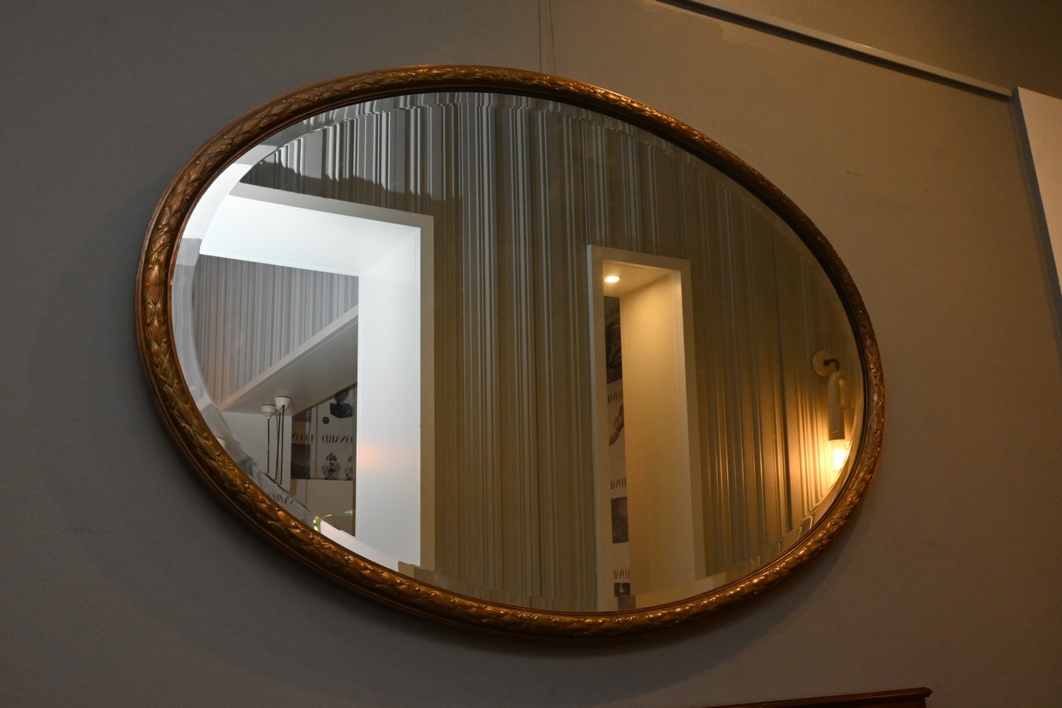A COPPER-FRAMED OVAL WALL MIRROR (74H X 105W CM) (LEONARD JOEL DELIVERY SIZE: LARGE)