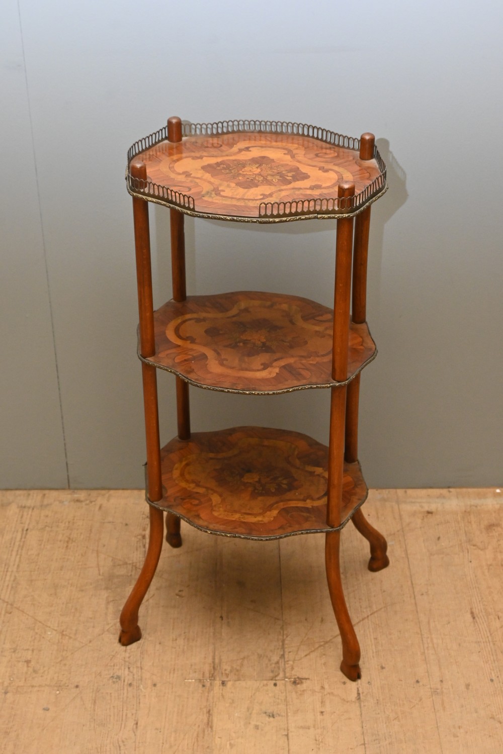A MARQUETRY ÉTAGÈRE IN TRANSITIONAL LOUIS XV / LOUIS XVI MANNER (A/F) (76H X 34W X 27D CM) (LEONARD JOEL DELIVERY SIZE: LARGE)
